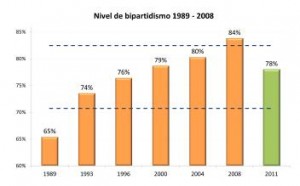 Primer paso: estimar el nivel de bipartidismo: bajará al 78%.
