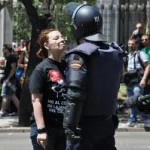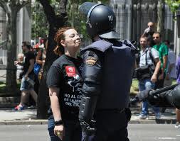 El día de ayer nos dejó imágenes estupendas como ésta (en que la manifestante opuesta al cierre de las minas de carbón hace de tripas corazón) y también otras impactantes, como la que mostraban otra manifestante con la cabeza ensangrentada, a saber por qué acción, y la que contenía una inocente niña de 11 años con un imponente cardenal en su espalda, producto de una de esas balas de goma que dicen los directivos de los que las disparan que lo hacen hacia el suelo.