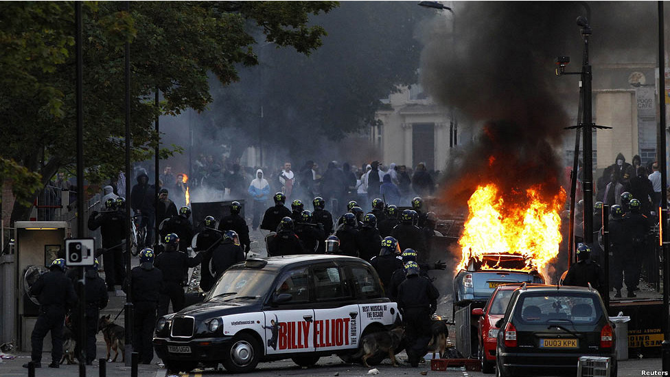 A pesar de que los disturbios en el Reino Unido han sido provocadas por los disparos sobre el sospechoso Mark Duggan , todos coinciden en que expresan un malestar más profundo. ¿De qué tipo? Al igual que con la quema de automóviles en los suburbios de París en 2005, los amotinados del Reino Unido no tenía ningún mensaje para entregar. (Hay un claro contraste con las manifestaciones masivas de estudiantes en noviembre de 2010, que también recurrieron a la violencia. Los estudiantes estaban dejando en claro que ellos rechazaron las propuestas de reforma a la educación superior.) Es por esto que es difícil concebir a los manifestantes en el Reino Unido en términos marxistas, como una instancia de la emergencia del sujeto revolucionario, se ajustan mucho mejor a la noción hegeliana de la «chusma», los que están fuera del espacio social organizado, que puede expresar su descontento sólo a través de «irracionales» estallidos de violencia destructora – lo que Hegel llamaba «negatividad abstracta»-.
