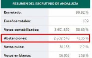 Muchas, muchas personas ya no ven útil ir a votar. Es una tendencia que no es nueva. Ni mucho menos participar en la actividad política. Es responsabilidad de los diferentes poderes públicos llevar a cabo políticas que llenen de contenido las obligaciones constitucionales del Estado social. En la medida en que veamos útiles la función de nuestros representantes en las instituciones, será un elemento motivador al voto y a la participación en la vida política, y para ello se han de abandonar prácticas partidarias de mero enfrentamiento y olvido de los problemas reales de los que somos administrados, representados en el sistema de representación política.
