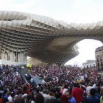 Como persona activista – a veces más a veces menos, pero siempre inquieta – os digo ¡GRACIAS! y ¡mucho ánimo! a todas y a todos los que habéis organizado esto y que habéis salido a la calle. Tenéis que seguir y cubrir más frentes. Si pedimos una democracia participativa, hay que participar y demostrarles a los que mandan, que la participación ciudadana en las decisiones puede ser muy útil, muy fructífera y que los ciudadanos somos más sensatos de lo que ellos creen. Dirán que yendo a manifestarnos parecemos un rebaño de ovejas, pero un baño de masa crítica es lo que se llevaron ellos esa tarde. Tanto, que los grupos políticos minoritarios acudimos vestidos de calle, sin traje, ni corbata, ni camisetas electorales, ni banderolas ni pins. Éramos y seguimos siendo, gente normal y corriente; pero los altos políticos de los partidos más conocidos no reivindicaron en la calle, la Democracia que si defienden estos días en sus mítines autocomplacientes.