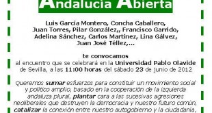 En la Universidad Pablo de Olavide, mañana sábado a partir de las once de la mañana, en el edificio 24, aula 107, tendrá lugar un encuentro de personas de la izquierda andaluza, vinculadas unas a Primavera Andaluza, otras a la corriente Andalucía Ecología, a Izquierda Abierta, Mesas de Convergencia, NIVA, ...