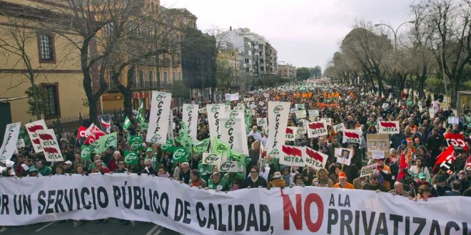 La manifestación de los empleados públicos de la Junta de Andalucía celebrada el pasado sábado 22 de enero desde el Palacio de San Telmo hasta el Parlamento ha vuelto a sorprender al Gobierno andaluz por la masiva participación ya que ha logrado convocar, superando la anterior del 13 de noviembre, a más 40.000 personas que marcharon durante cerca de tres horas en su largo recorrido de varios kilómetros. La manifestación ha coincidido con la celebración de la Convención nacional del Partido Popular en Sevilla, por lo que parece interesante reflexionar sobre el significado relacional de ambos actos.