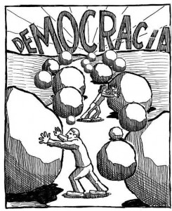 Democracia, por tanto, es decidir y respetar. Sin embargo, la intelectualidad institucional intenta reducir la idea de participación a que los ciudadanos colaboren -cuando sean llamados a ello- en toda clase de mecanismos consultivos, vacíos de contenidos. La mayoría al final sólo sirven para legitimar la opresión política: consejos asesores, plazos de alegaciones públicas, supuestas asambleas participativas (casi siempre controladas y capadas)… son más de lo mismo. Migajas que ofrecen algunos políticos que, sin renunciar a su poder, quieren parecer cercanos a la sociedad y tolerantes con las decisiones populares.
