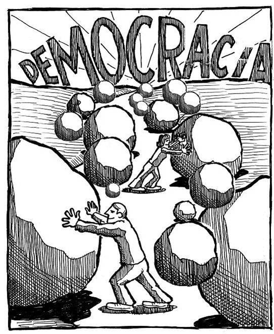 Pero las migajas no bastan para construir un sistema que realmente pueda llamarse democrático. La democracia participativa implica un cambio radical de mentalidad: frenar decididamente el terreno de la ley; acabar con tantas normas arbitrarias que ocupan innecesariamente espacios donde serían posible decisiones fruto de la iniciativa y la libertad anárquica de la ciudadanía.