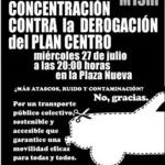 Las entidades firmantes rechazamos por completo la prevista eliminación del “Plan de Ordenación Viaria del Casco Histórico para la protección de la Zona Monumental”, conocido como Plan Centro, y nos adherimos a la concentración que el Movimiento 15-M ha convocado contra su derogación para el próximo miércoles 27 de julio, a las 20 horas, en Plaza Nueva.