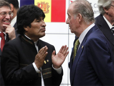 Público.EFE-01/11/2011.El presidente de Bolivia, Evo Morales, dijo hoy que Latinoamérica no debería rendir cuentas cada año al rey Juan Carlos de España en la Cumbre Iberoamericana, que a su juicio está en «agonía» como mostró la ausencia de la mayoría de los mandatarios en la última reunión, celebrada en Asunción a finales de octubre.