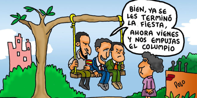 La actualidad política en el humor de Polo 14 marzo 2019 Está Pasando Deja un comentario 535 Vistas Comparte tweet Donald Trump Las tres derechas Pablo Casado VOX Zoido 2019-03-14 Rafael Comparte tweet