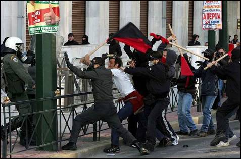 Esta incapacidad voluntaria para querer y poder reconocer la realidad, está obteniendo como todo logro una fragmentación de la crisis. El caso griego es un exponente y un experimento de esta estrategia de dispersión. Después del gran festín del capitalismo atlántico y asiático, ahora resulta que los peores eran los griegos. La gran trampa ideológica es creer que lo que ocurre en Grecia, y mañana puede ocurrir en Portugal o España; es un asunto interno, un problema provocado por que allí se han hecho mal las cosas. Mientras que Grecia arde el fantasma de la UE vaga por Europa impotente y confuso. Ahora, estamos empezando a sentir las consecuencias de no haber construido política (democracia) y socialmente (derechos) Europa. Haber seguido la senda del infame Blair ha llevado a que en el peor momento, Europa (el único actor político capaz de comandar otro proceso de globalización) una de las víctimas ( un “cadáver excisito”) más de la crisis.