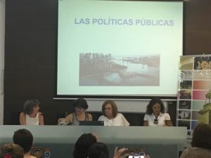 El tema de “La paridad y la ciudadania de las mujeres” fue ampliamente analizada por Blanca Rodríguez Ruíz, profesora de derecho Constitucional de la Universidad de Sevilla y moderada por Carmen Alborch, ex ministra de Cultura, senadora socialista y escritora. Blanca nos recordó que la medida más polémica de la Ley de Igualdad fue la paridad electoral, llegando incluso al Tribunal Superior. Según Blanca Rodríguez, si la representación es “hacer presente lo que está ausente”, el Estado español es un Estado democrático representativo, representativo con un matiz democrático, al que hay que convertir en democrático. Hay que cambiar los elementos de este Estado, que ha creado una falsa sensación de homogeneidad gracias a una ficción de la unidad, un cuerpo homogéneo de representados. Se asume la diversidad en lo representado, con el voto femenino, pero no se ha roto con el principio de representación, no hay paridad. A pesar de la cuota paritaria flexible del 40/60, no nos sirve si no se hacen políticas para las mujeres. Las mujeres no solo tienen que estar en el debate, sino en la toma de decisiones. Para ello hay que redefinir el espacio público, con listas abiertas para construir un Estado paritario. La democracia sin paridad, no existe.