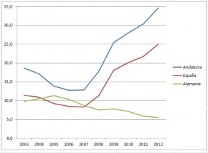 TASA DE PARO (Andalucía vs. España vs. Alemania)