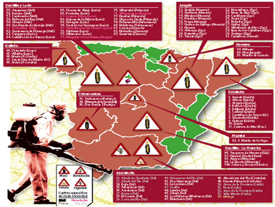 La organización Amigos de la Tierra ha hecho público la localización de plantaciones experimentales al aire libre de cultivos transgénicos en todo el Estado español. Dos Hermanas, Marchena, Coria del Río, Villamartín, Lebrija, La Luisiana, Brenes, Utrera, Montellano, Los Palacios, Fuente Palmera, Aznalcazar o Alcalá del Rio son pueblos andaluces donde se ha solicitado permiso para estas plantaciones experimentales y donde el Ministerio de Agricultura ha concedido permiso. Les dejamos aquí enlace con el documento: Localizacion_ensayos_2010