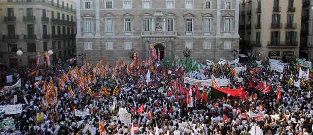 Pese a que la concentración estaba convocada oficialmente para las 18:00 horas, muchos minutos antes la plaza de Sant Jaume ya estaba prácticamente abarrotada de trabajadores de los servicios públicos, que llevaban pancartas en contra de los recortes iniciados por el ejecutivo catalán.