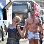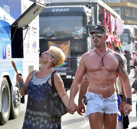 Catorce carrozas, patrocinadas por entidades comerciales integran la marcha, encabezada por pancartas en las que se leía «Salud e igualdad por derecho» y «No al recurso del PP contra el matrimonio».
