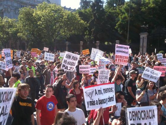 Desde la revista El Naufragio queremos manifestar nuestro apoyo a las movilizaciones surgidas a raíz de las convocatorias del 15 de mayo. Estamos viviendo unos años de locura liberal en los que se han tomado medidas supuestamente excepcionales de consecuencias catastróficas para los trabajadores. Unas medidas dictadas por empresarios y banqueros, pero que vergonzosamente han contado con el apoyo explícito de sindicatos y partidos políticos amparados en la excusa de una crisis financiera. Todo ello con la supuesta voluntad de eludir un colapso calamitoso del sistema capitalista que podría arrasar con todos nosotros. En este contexto deprimente y abúlico, los políticos preparaban una nueva fiesta de la democracia y se dedicaban a cacarear ñoñeces e imbecilidades que ni ellos mismos se creen. Sin embargo, sin esperarlo, el enésimo canapé del mitin electoralista ha empezado a saberles a rancio, la imprevisibilidad con la que un centenar de miles de personas salieron el domingo 15M en diferentes ciudades ha desbordado las expectativas de los propios convocantes y convocados. La ingenuidad de los primeros manifiestos con los que se trataba de aunar el descontento ha quedado superada por las pintadas, acampadas y discusiones que se están produciendo de una forma espontanea. Hay que constatar que la chispa está prendiendo las ganas de protestar, de intervenir y de discutir de la gente y que las movilizaciones han continuado de un modo autónomo, desobedeciendo las prohibiciones de juntas electorales y fuerzas de seguridad.